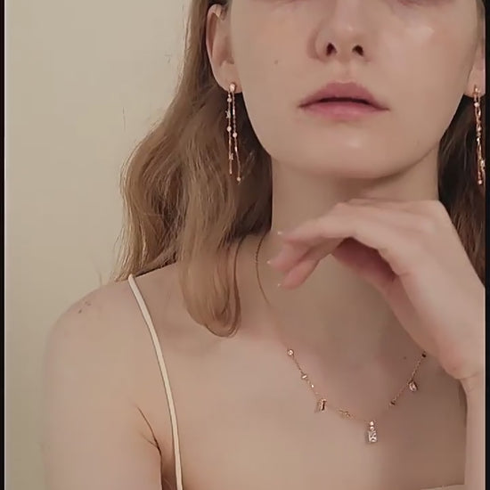 Elegant, fluid, and dazzling — the Aurora Sugar Cube Silver Earrings shimmer with modern sophistication. Each cascading chain reflects light beautifully, enhanced by baguette-cut zircons that catch every glance. Perfect for evenings or everyday glam, they complete the look when paired with the matching necklace and bracelet.